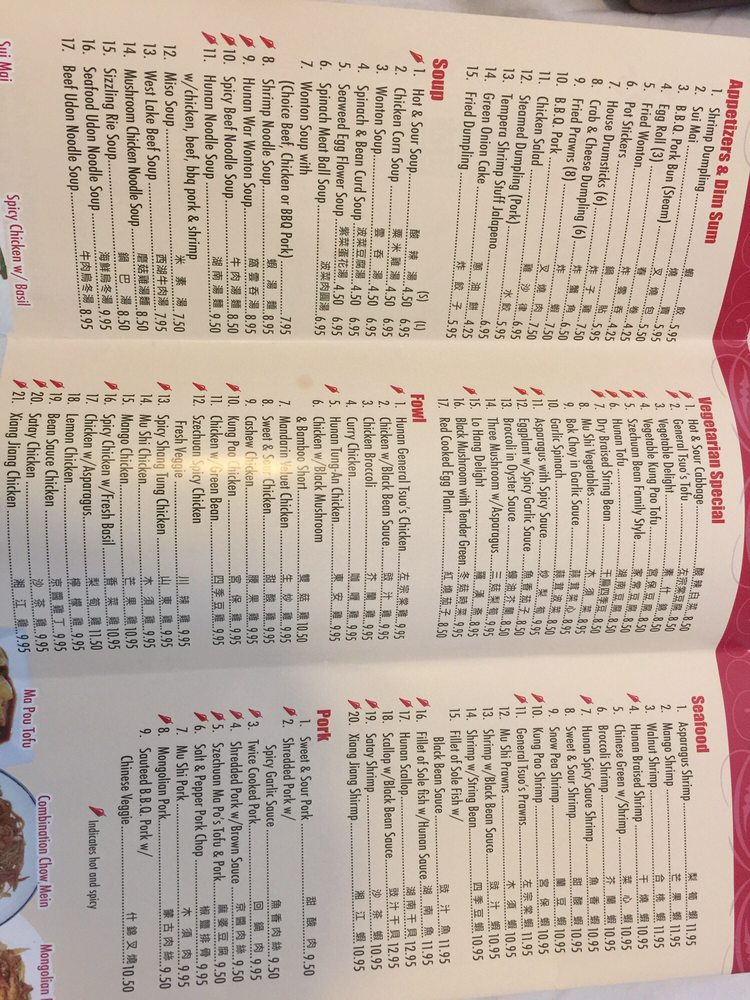 Eggplant, shrimp, chicken, red bell pepper and fresh basil in a spicy plum sauce. Hot and spicy.